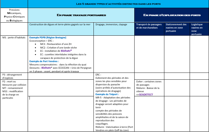 2. Exemples de mesures ERC/EC pour les activités portuaires